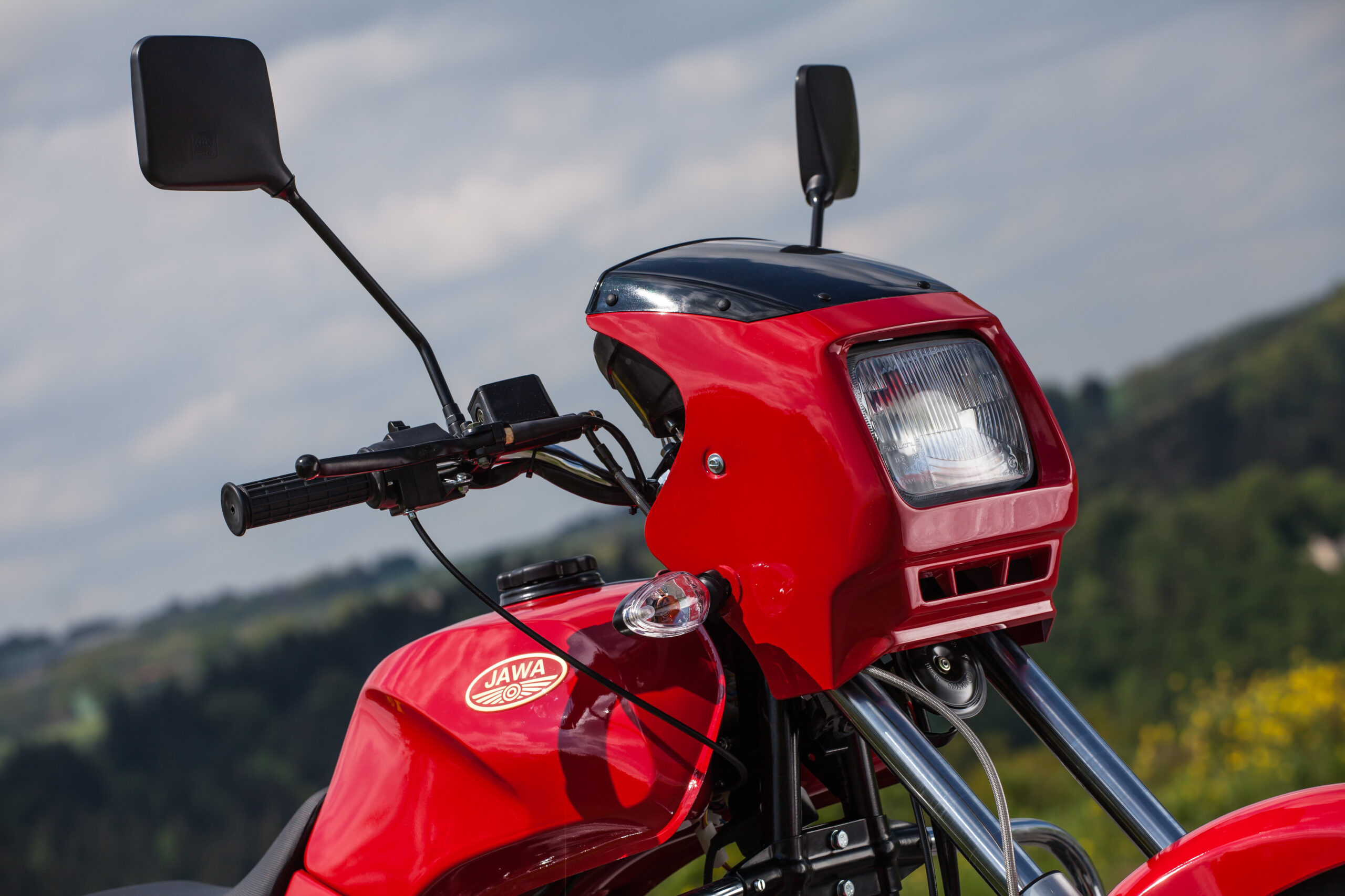 JAWA 350 Style – motocykl s malou kapotáží a hranatým světlometem,