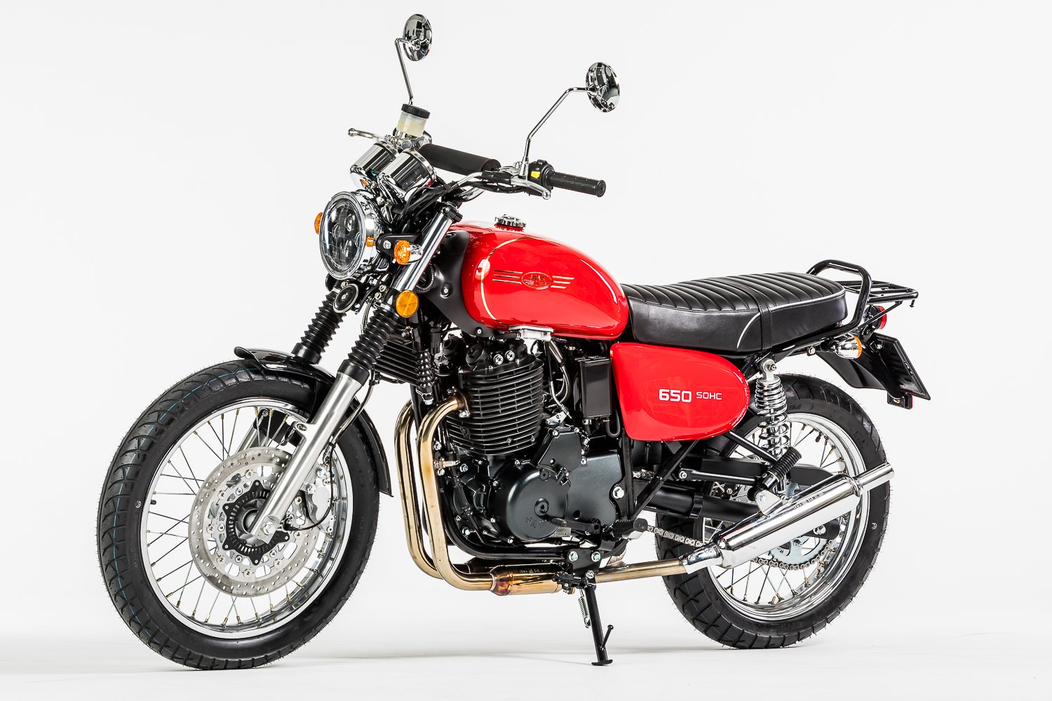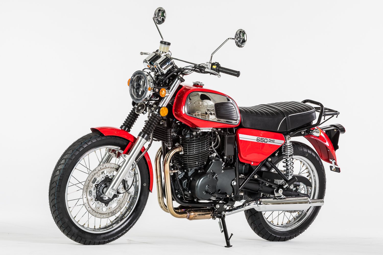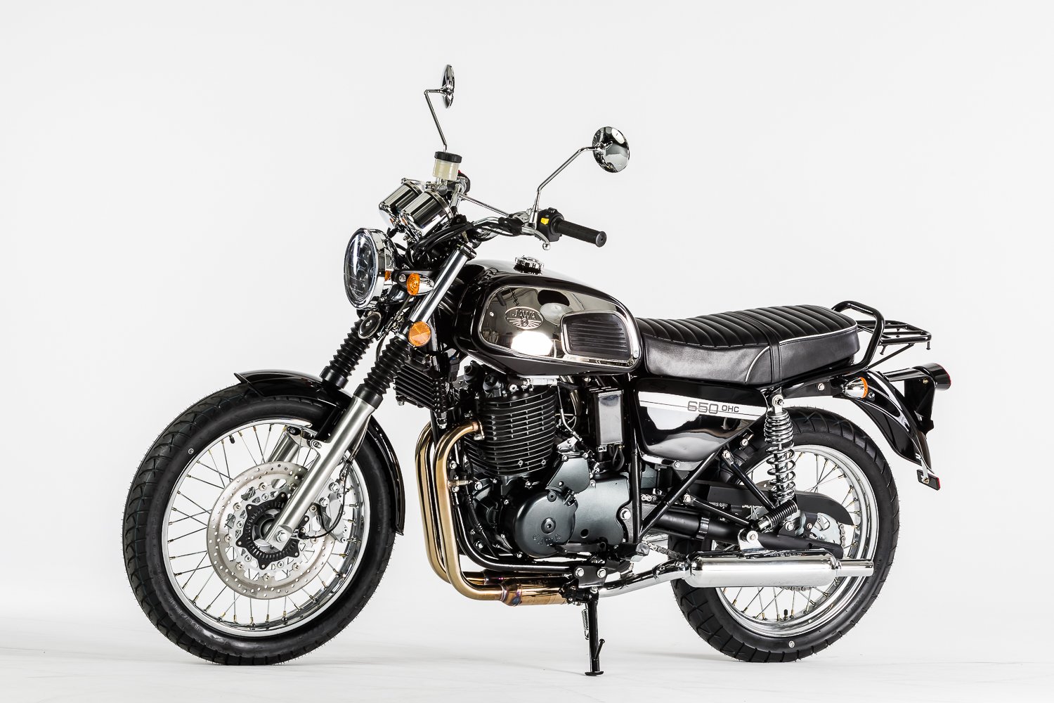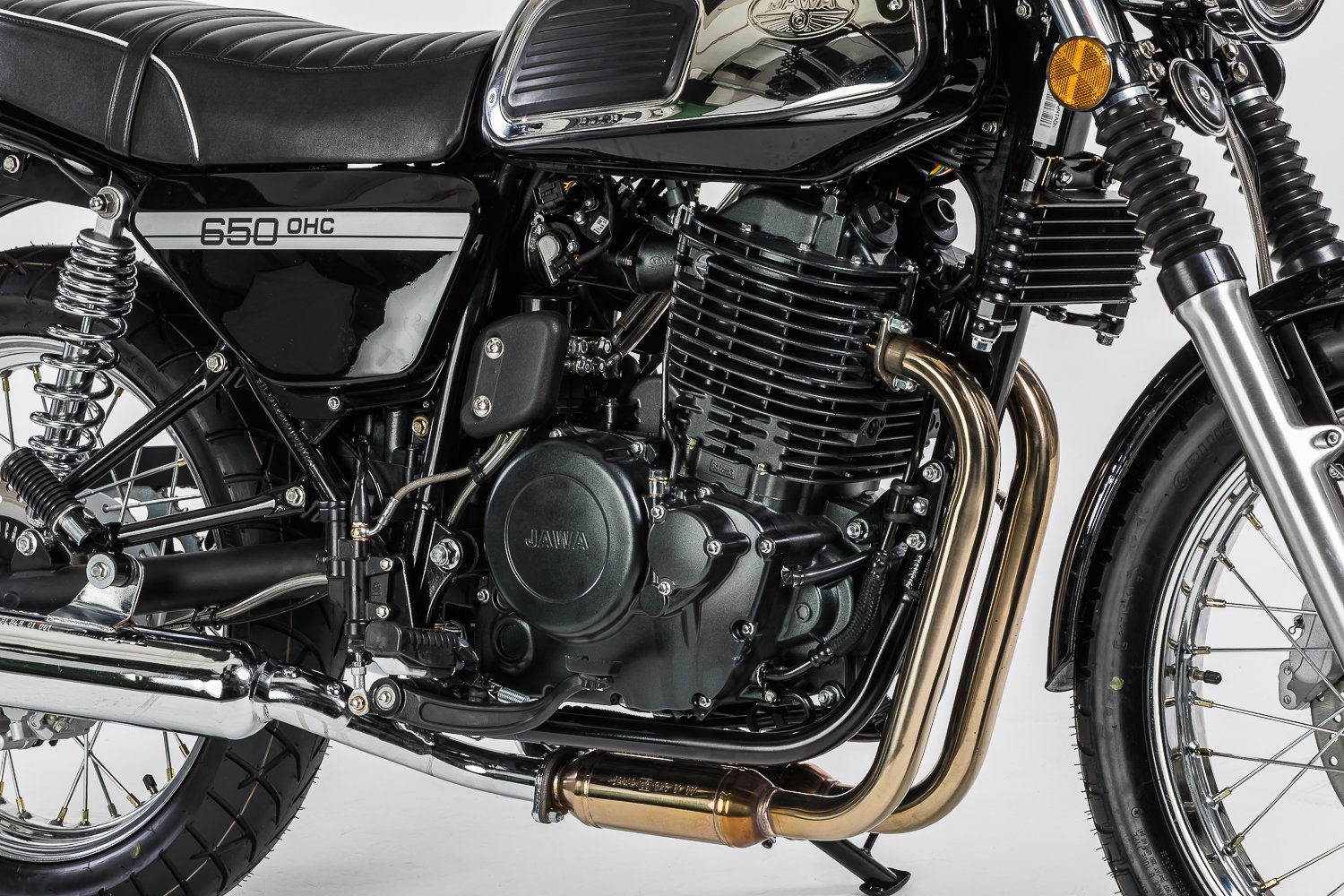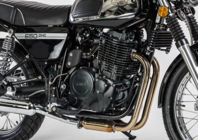 JAWA 650 OHC – Silnější motor, brzdy i rám – to vše jsou hlavní rozdíly oproti vzhledově blízkému modelu JAWA 350 OHC. Oba modely však navazují na tradiční design motocyklů JAWA ze 70. let a hrdě se tím hlásí k odkazu tradiční motocyklové značky JAWA. Motocykl je opět postaven především z ocelových komponentů, tak jak tomu bylo i v historii naší značky. Díky doplňkům jako jsou padací rámy, nebo nosiče kufrů se může i model JAWA 650 OHC stát nejen Vaším obratným dopravním prostředkem, ale i spolehlivým parťákem na delší cestování.